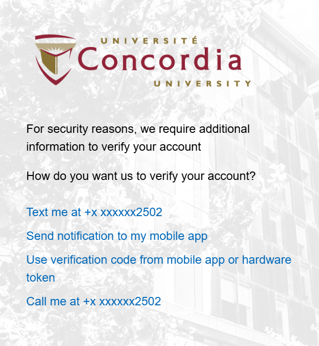 - To verify your account, select one of the available verification options and complete the verification process. After you verify your account, you will have full access to Concordia Library’s online resources.